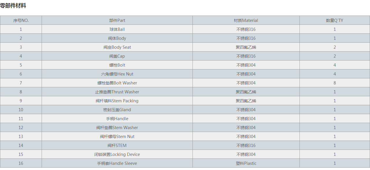 | 1 | 球體Ball | 不銹鋼316 | 1 |